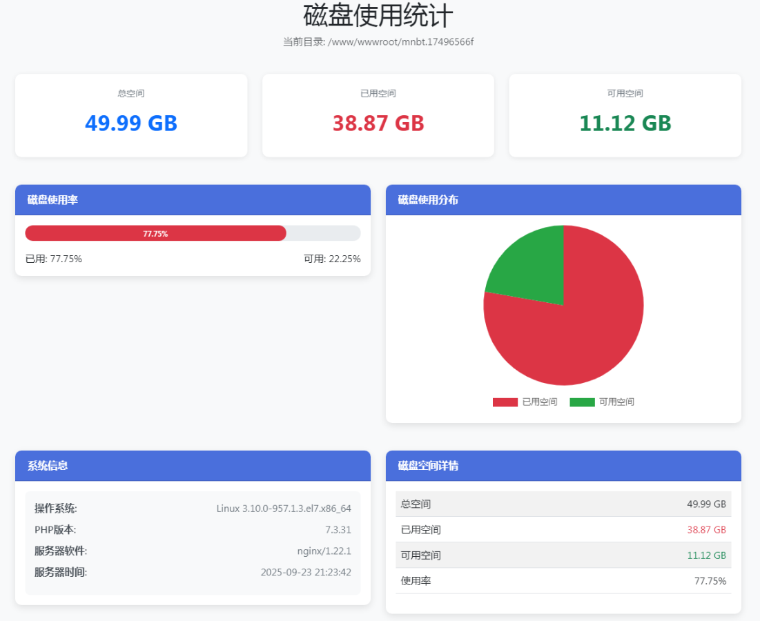 <?php // 获取磁盘使用情况(使用允许的目录路径) function getDiskUsag...