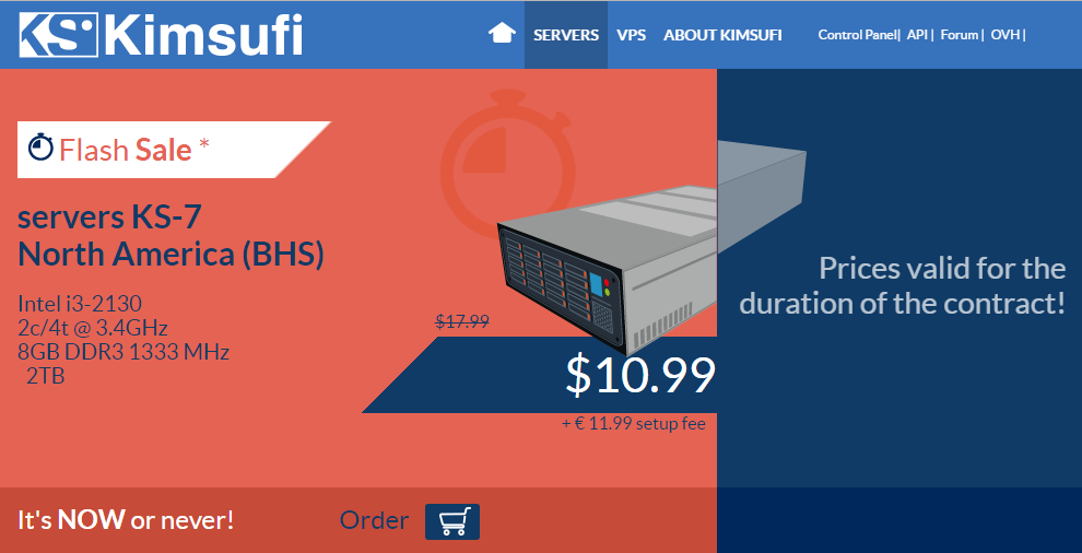 服务器KS-7(FR / CA数据中心)Intel i3-2130 2c / 4t @ 3.4GHz 8...